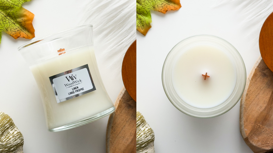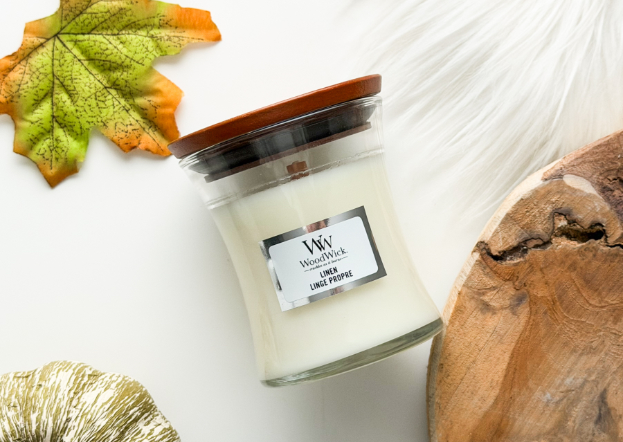 ‘Deze geurkaars van WoodWick is een mooie aanvulling in jouw interieur. De geur Linen ruikt naar schoon en fris wasgoed. De top- en middennoten citroen, groene appel, jasmijn en lelietjes-van-dalen. De basisnoten bestaan uit sandelhout, cederhout, patchouli en muskus. niek knisperend houten lont. De geuren zijn met zorg samengesteld en uitgebreid getest, en zorgen voor een heerlijke geur én sfeer in jouw huis.’