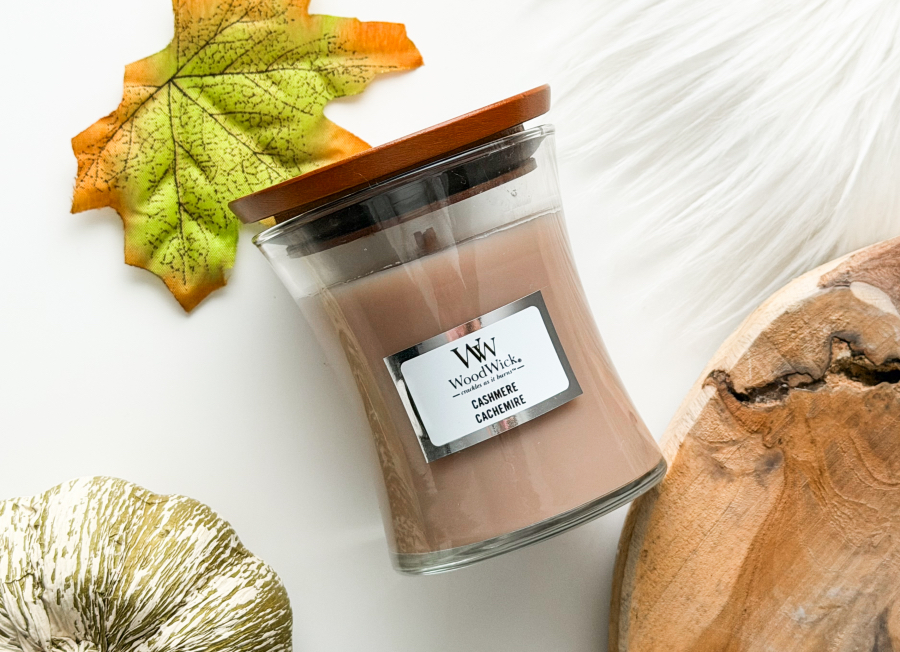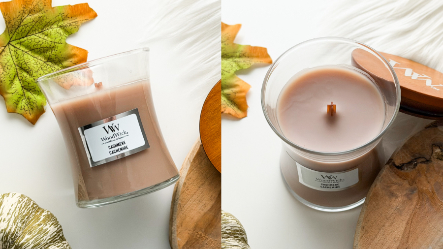 ‘WoodWick Cashmere is een geur met een heerlijke combinatie van franse noten, waaronder sandelhout, tonkaboon en kweepeer, zorgen voor een weelderige, meeslepende geur. De topnoten bestaan uit kweepeer, peer, rood fruit en gekoelde gember en middelnoten van orris, roze peper, sleedoorn en braam. De basisnoten bestaan uit sandelhout, cederhout en tonkaboon.’