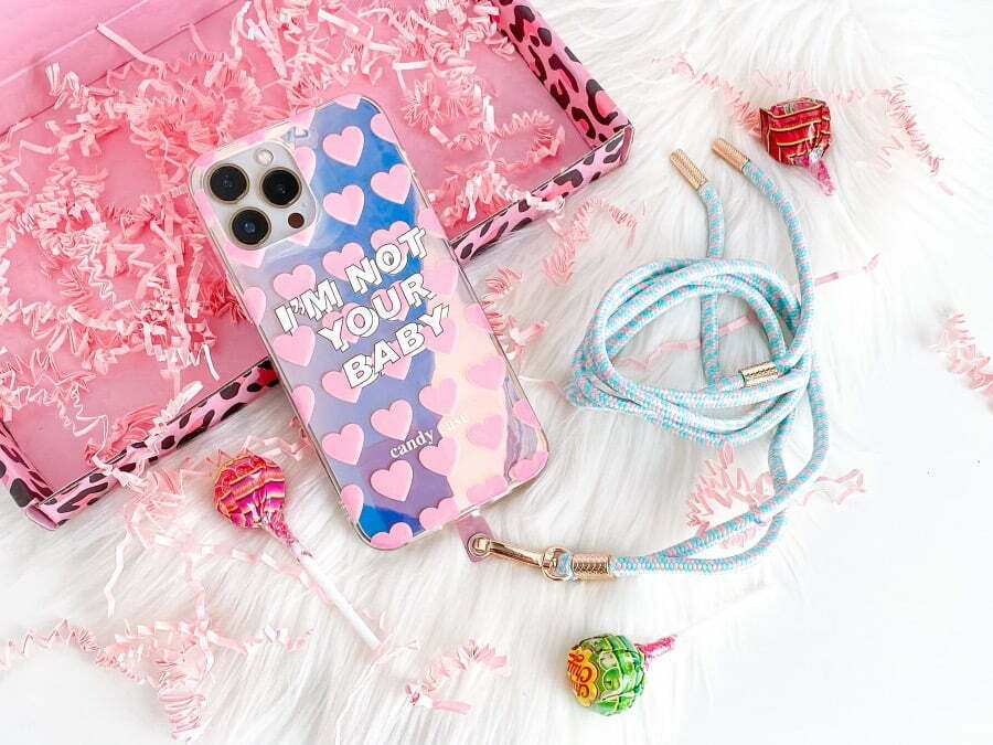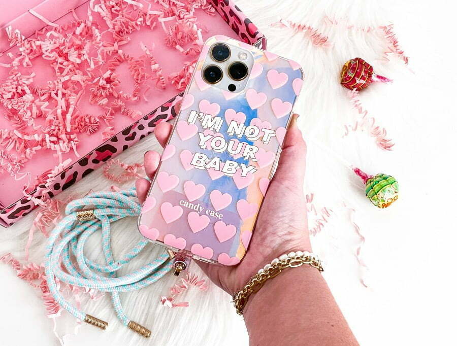 ‘De Candy Halo Baby is een van de twee ontwerpen uit de Halo lijn. Dit Semi transparante hoesje heeft een speels holografisch effect en een toffe print met de tekst “I’m not your Baby”. Aan de hand van welke kleur iPhone je hebt, zal het hoesje een andere look & feel krijgen.’