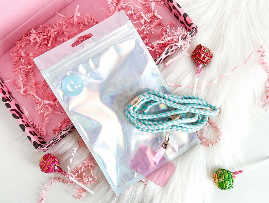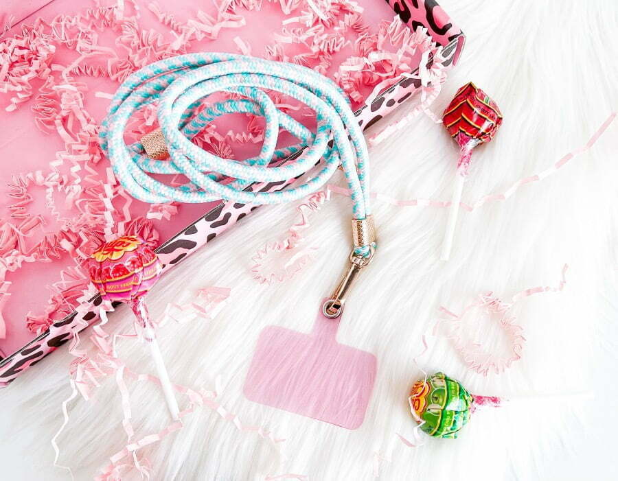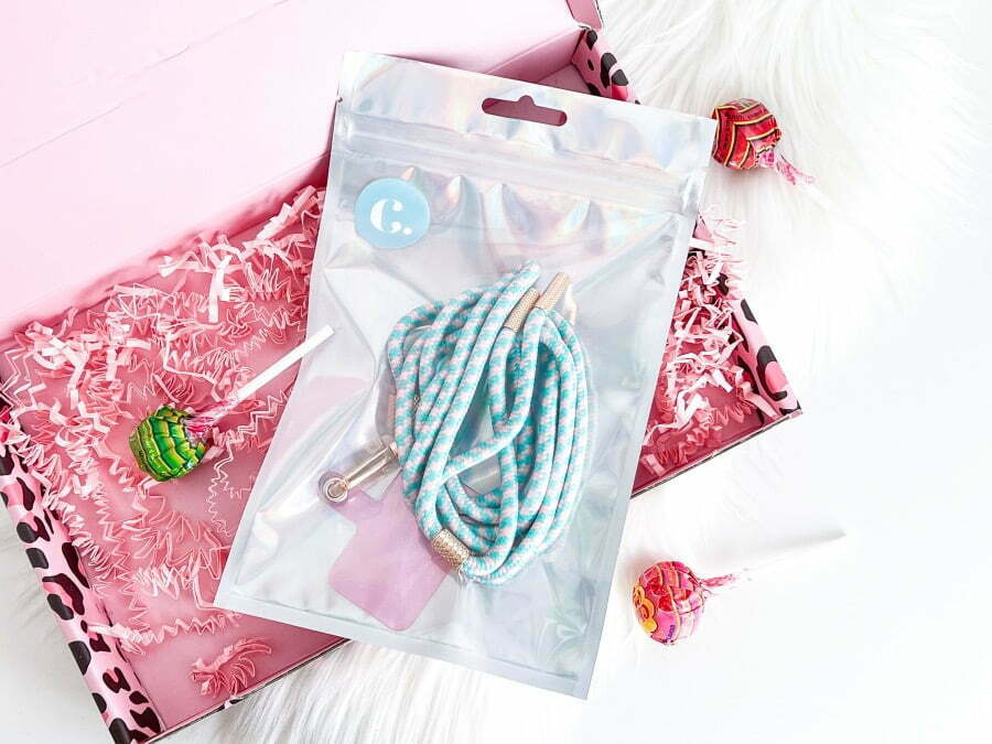Het Candy telefoonkoord is in vier kleuren verkrijgbaar. Mint, multi, petrol en roze. De kleuren mint en roze hebben goudkleurige hardware en de kleuren multi en petrol hebben zilverkleurige hardware. Ik heb zelf gekozen voor de kleur Mint. Ik vind hem perfect bij het hoesje passen! Wat ik ook top vind is dat je hem heel makkelijk kunt bevestigen en hem ook weer makkelijk los kunt halen. Zo hoef je het hoesje niet altijd in combinatie met het koord te dragen. Perfect!