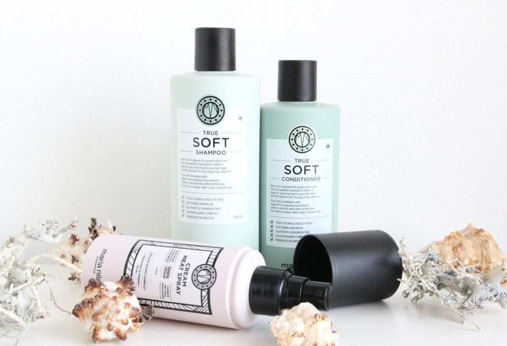 Producten die ik meestal altijd gebruik voor mijn haar zijn een shampoo, conditioner (soms een masker), anti-klit spray en een heat protector. De producten die ik vandaag aan jullie voor wil stellen zijn de Maria Nila True Soft Shampoo, de Maria Nila True Soft Conditioner en de Maria Nila Cream Heat Spray.
