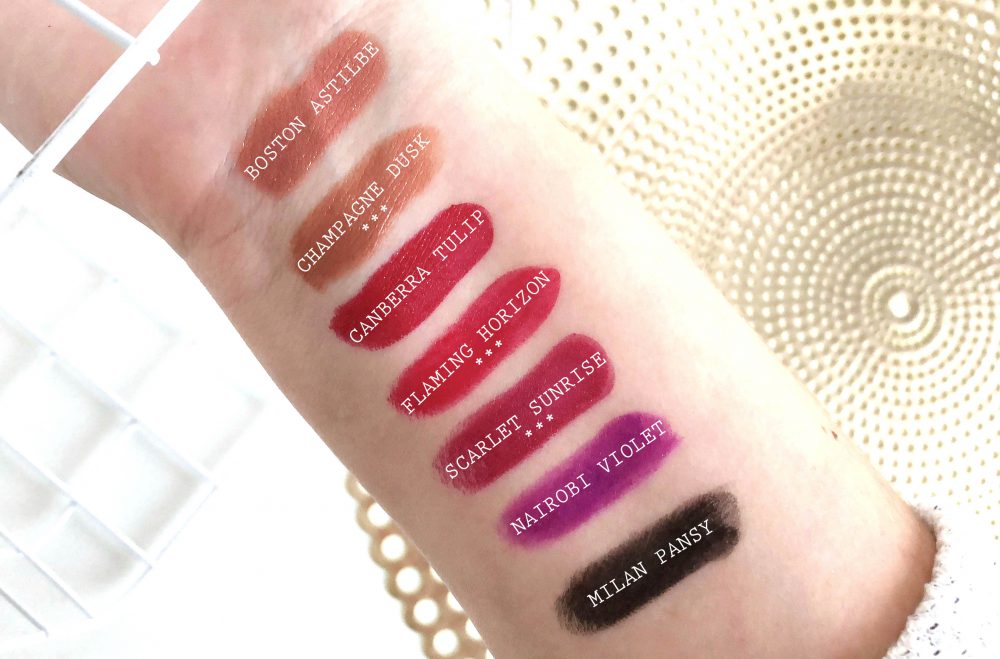 De kleuren van de lipsticks vind ik ontzettend mooi al zijn er twéé kleuren bij die ik niet snel zal dragen. Dat zijn Nairobi Violet en Milan Pansy. Deze kleuren vind ik persoonlijk iets te heftig. Dit zijn kleuren die je moet durven dragen. Alle andere kleurtjes vind ik wel erg leuk. Het zijn vooral fijne, draagbare kleuren waar je er nooit genoeg van kunt hebben. Mijn 2 favoriete kleuren zijn Champagne Dusk en Scarlet Sunrise.